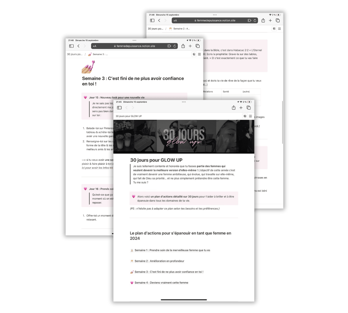 → Ton challenge sur 30 jours + tes tableaux pour suivre ton évolution & ton espace "journal intime" sont regroupés en 1 seul endroit simple d'utilisation : sur Notion
