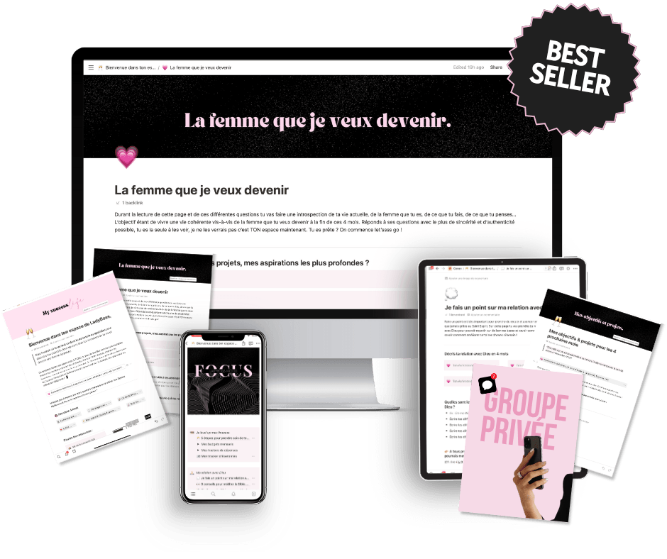 La méthode ultime pour atteindre tes objectifs en 4 mois et ton espace complet dans lequel tout est réunit pour simplifier ta vie quotidienne, t'aider à passer à l'action pour vivre la vie de tes rêves et level up dans tous les domaines de ta vie !